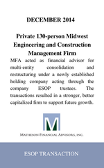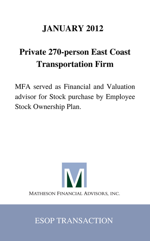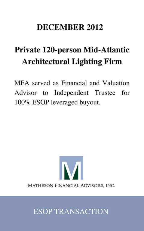 If you have an established ESOP or are exploring an ownership transition, Matheson Advisors can provide you with a well-documented and reasoned fair market value opinion.